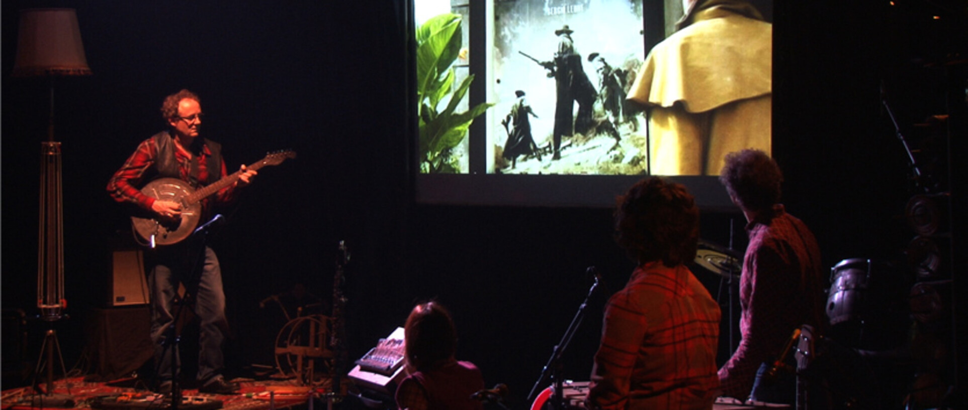Concert d’objets, hommage à Enio Moricone La collaboration avec Jean-François Hoël et tous les musiciens de Clap’s a été une expérience plaisante et créative… La scénographie évoque l'univers du western. Conçue en grande partie à partir d’objets de récupération, les éléments du décor sont au cours du spectacle métamorphosés par les musiciens et le bruiteur. Ils permettent de nouvelles inventions sonores. A partir du {bar-xylophone,} du clavier-fer-à-cheval, de la guitare boite-de-film 35mn, de la batterie tonneaux du cordophone-lampe, jaillissent des images poétiques et des sons étonnants. Les musiciens réinterprètent sur scène les morceaux les plus célèbres de {Il était une fois dans l’ouest}, {le Bon, la Brute et le Truand}, ou des films noirs comme {Le clan des siciliens ou Peur sur la ville}… {Télérama TTT Françoise Sabatier-Morel - 5 février 2014} « Toute une lutherie étonnante qui séduit autant l’œil que l’oreille (tous les instruments ou objets sonores sont faits avec des matériaux de récupération) et compose le décor sonore avec lequel jouent les interprètes, et un dispositif vidéo. » Direction artistique, mise en scène : Jean-François Hoël / Musiques : Ennio Morricone Adaptations et compositions originales : Jean-François Hoël, Jean Louis Mechali, Frédéric Obry Scénographie : Valérie Valéro, Création d’instruments : Benoît Poulain, Alain Grazzelli Lumière : Gilles Robert / Son : Laurent Le Gall / Films : Christine François Avec Jean-François Hoël (clarinette en pvc, gants siffleurs, thérémin), Alain Guazzelli (idiophones, baril’drums, tubular-bar), Frédéric Obry (cordophones, scie musicale), Aurélie Pichon (aérophones, gueularde, clavier fer à cheval), Aurélien Bianco (bruitages, basse, senza basse) Partenaires_Coproduction Zic Zazou Lutherie Urbaine._Avec les soutiens du CNV (résidence au LULL), de la DRAC Picardie, de la Ville d'Aubervilliers, de l'ADAMI et la SPEDIDA Liens : http://www.ziczazou.com http://www.lutherieurbaine.com
